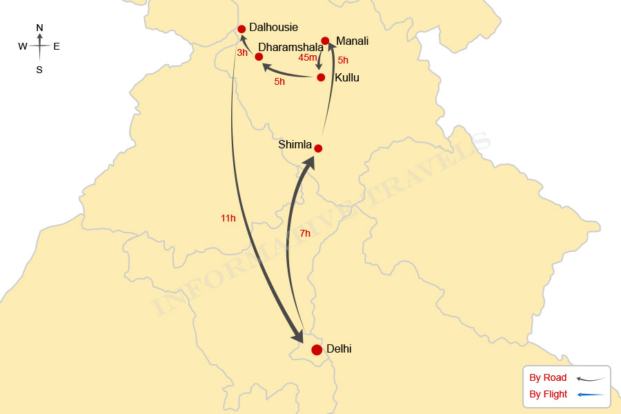 Delhi - Shimla - Manali - Kullu - Dharamshala - Dalhousie - Delhi