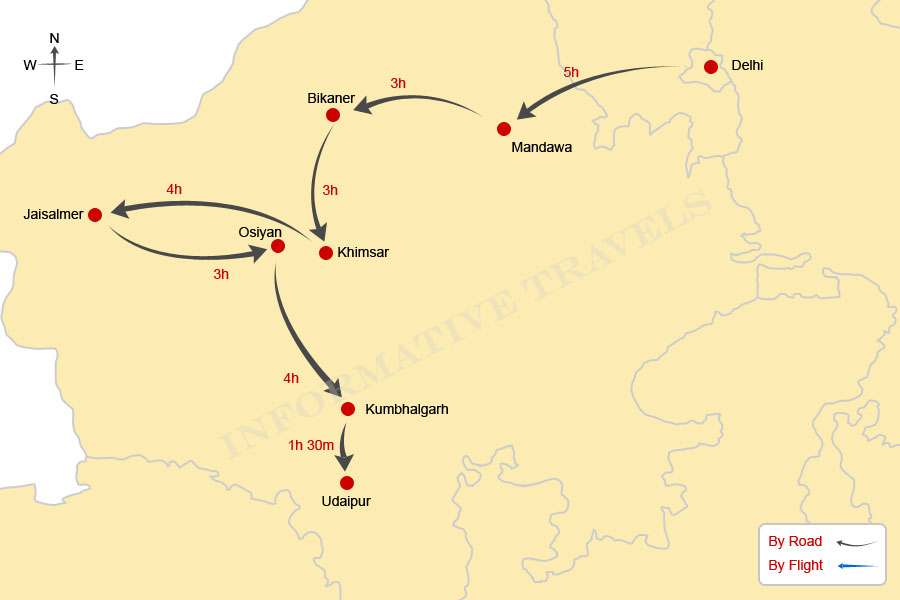 Delhi - Mandwa - Bikner - Khimsar - Jaisalmer - Osiyan - Jodhpur - Kumbhalgarh - Udaipur - 12 Day