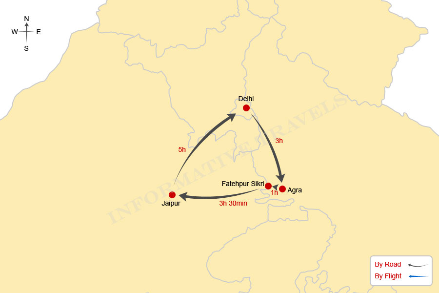 Day 3 : Agra to Jaipur Morning ; half day city tour of Agra covering Taj Mahal & Agra Fort. Afternoon : drive to Jaipur en route to Fatehpur Sikri. Arrive Jaipur, check into a hotel. Overnight stay.