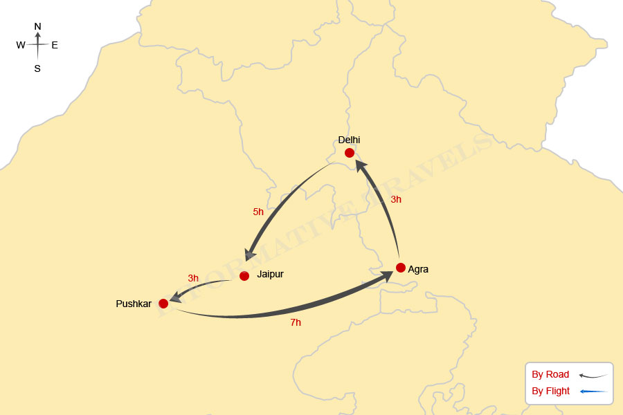 Destinations : (Delhi - Jaipur -Pushkar - Agra - Delhi),
