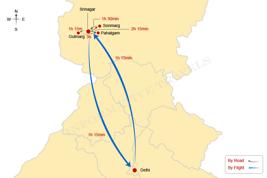 Delhi - Srinagar - Gulmarg - Pahalgam - Srinagar - Sonamarg - Delhi