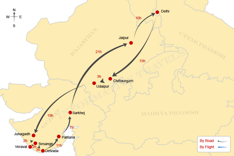 Delhi - Chittaurgarh - Mehsana - Gir - Palitana - Ranakpur - Jaipur - Delhi